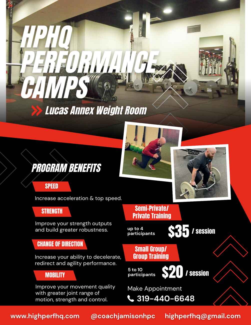 Individual, small group or team training sessions to enhance athletic physical preparedness, performance and competition readiness. Receive state of the art testing on force plates, timing gates and radar timing systems. Track your progress over these key performance indicators and experience individualized programs geared towards your specific needs.